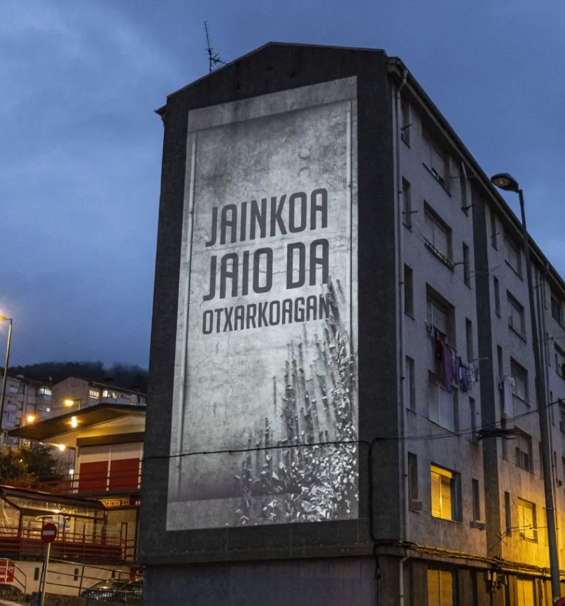 Videomapping "Biola bat ala Mailu bat" producido por Loraldia festibala.