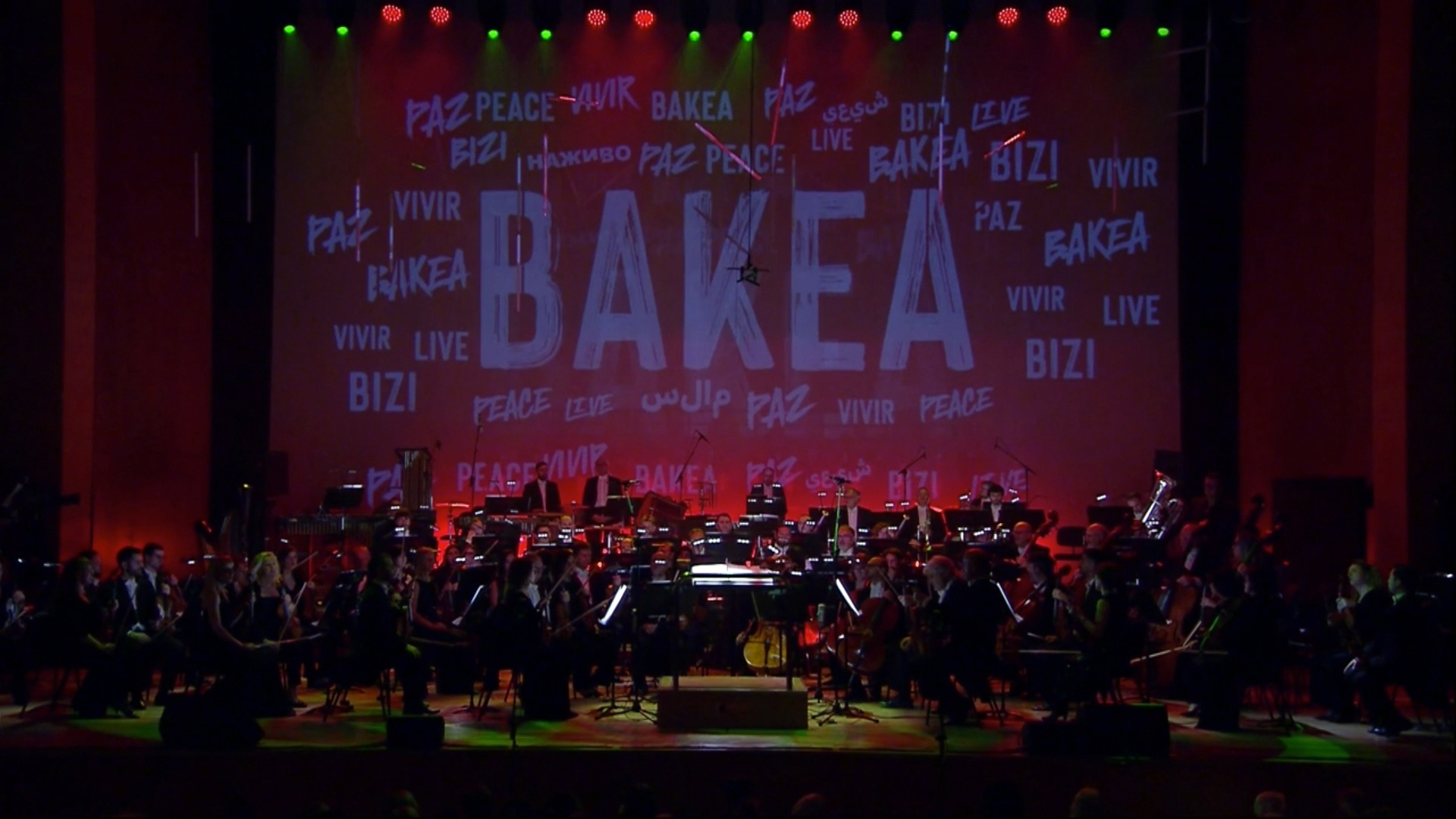 El concierto consistió en una mezcla de piezas interpretadas por Bilboko Orkestra Sinfonikoa y la Sociedad Coral de Bilbao que con el apoyo de Hortzmuga, de Izaro y Asier Etxeandia ofrecieron un espectáculo polifacético: desde la cantata 'Gernika' del compositor Pablo Sorozábal , al movimiento final de la '9ª Sinfonía' de Beethoven y al estreno estatal del prólogo de la ópera 'La muerte de Klinghoffer' del compositor John Adams. Esta parte de la obra estuvo formada por dos coros, el 'Coro de exiliados judíos' y el 'Coro de exiliados palestinos', un reflejo de la historia de cada uno de estos pueblos.